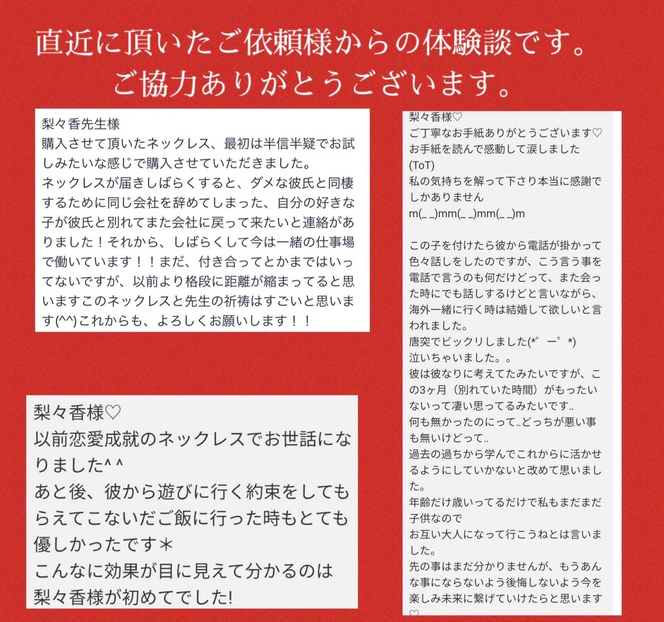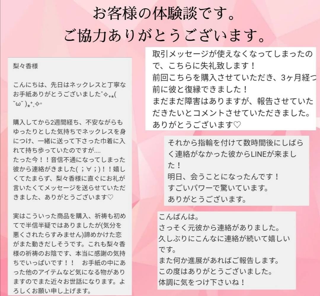 彼への気持ちや思いを彼に届ける思念伝達祈祷付き。